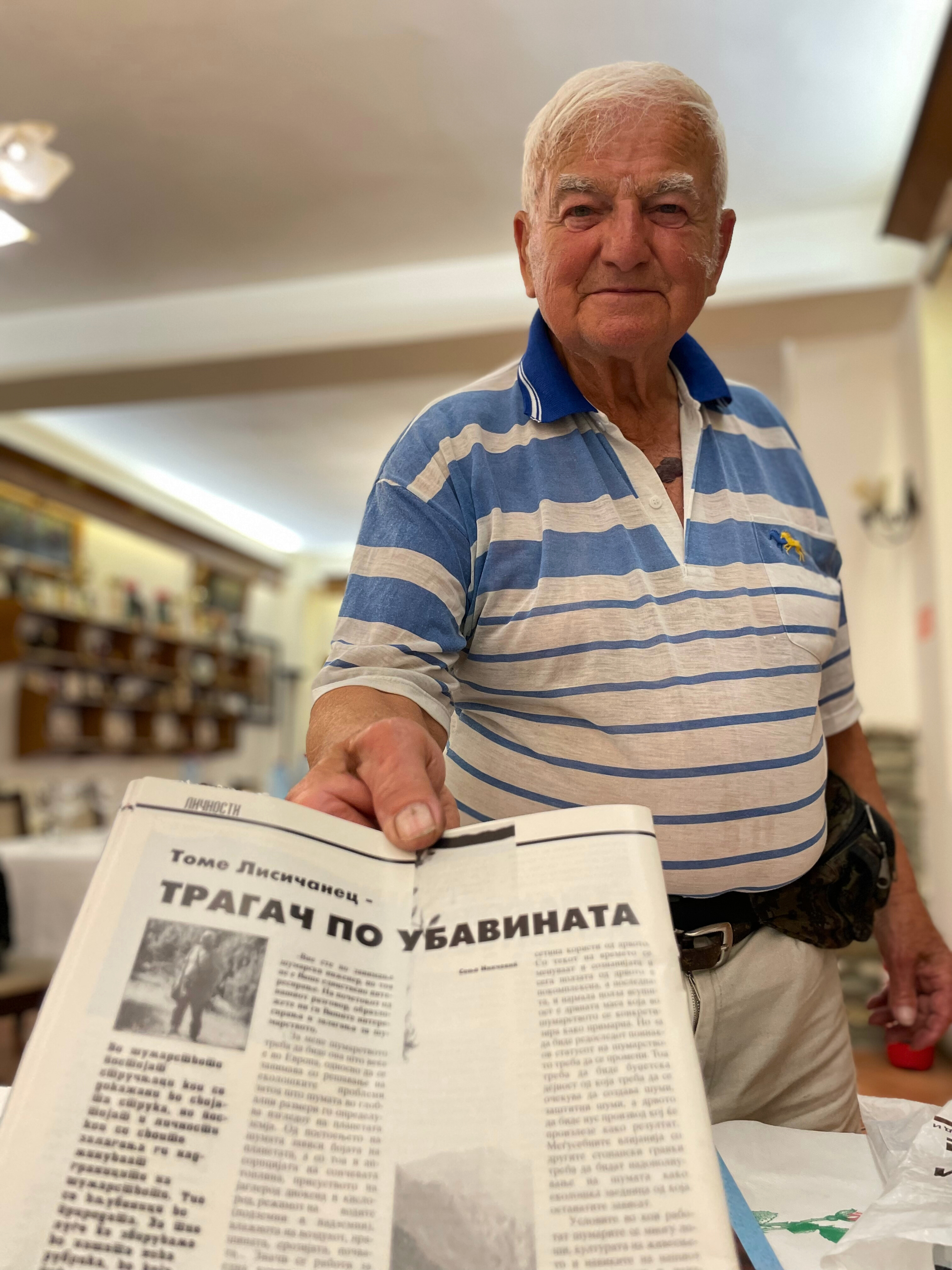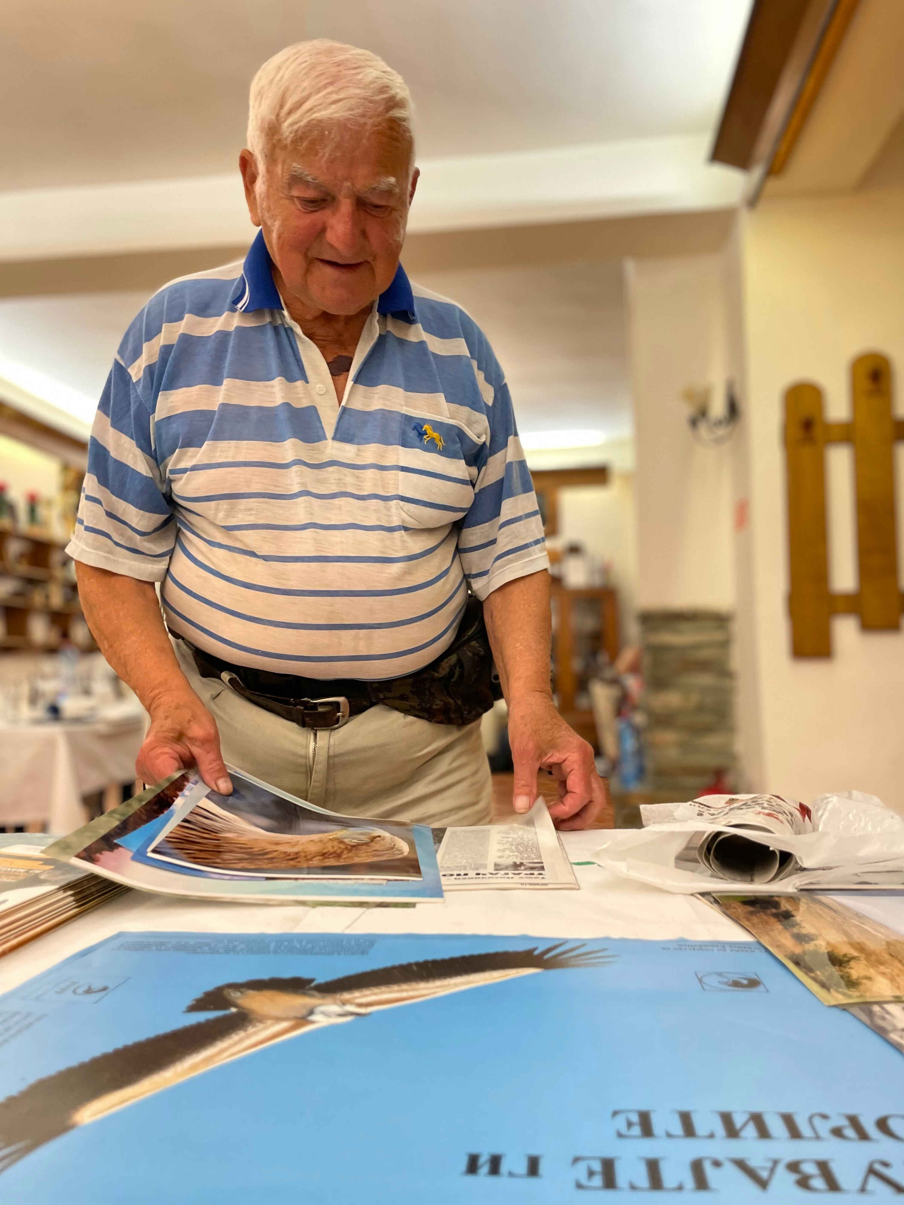 Sljedećeg dana opet smo sreli Tomu. Kako kaže, znao je gdje će nas pronaći jer turisti ne dolaze često u ovaj kraj. Ovoga puta, sa sobom nosi veliku vreću sa fotografijama i različitim uspomenama na svoje posjete prirodi. Pokazujući nam sve to, uvijek blago nasmijani čičko Tome priča o svojim izložbama fotografija orlova, orlovima, jezeru, šumi, planini, kao o najvećoj ljubavi u životu. Tu je podijelio s nama još jednu zanimljivost iz svog života. Naime, 1982. godine čičko Tome je napravio prvo i jedino hranilište za orlove u Sjevernoj Makedoniji i isto vodi od tada, a polako tu tradiciju nastavlja njegov sin. Kako nam priča, oduvijek je posmatrao, evidentirao i fotografirao svijet oko sebe, a zajedno sa biolozima iz bivše Jugoslavije napravio je izvještaje o prostorima oko Tikveškog jezera koji su doveli do toga da je formirana komisija koja je procijenila da u Kavadarcima postoji osnova za proglašavanje Tikveškog ornitološkog parka što se i dogodilo, a općinsko ekološko udruženje koje je tada osnovao postoji i aktivno radi već više od 40 godina.