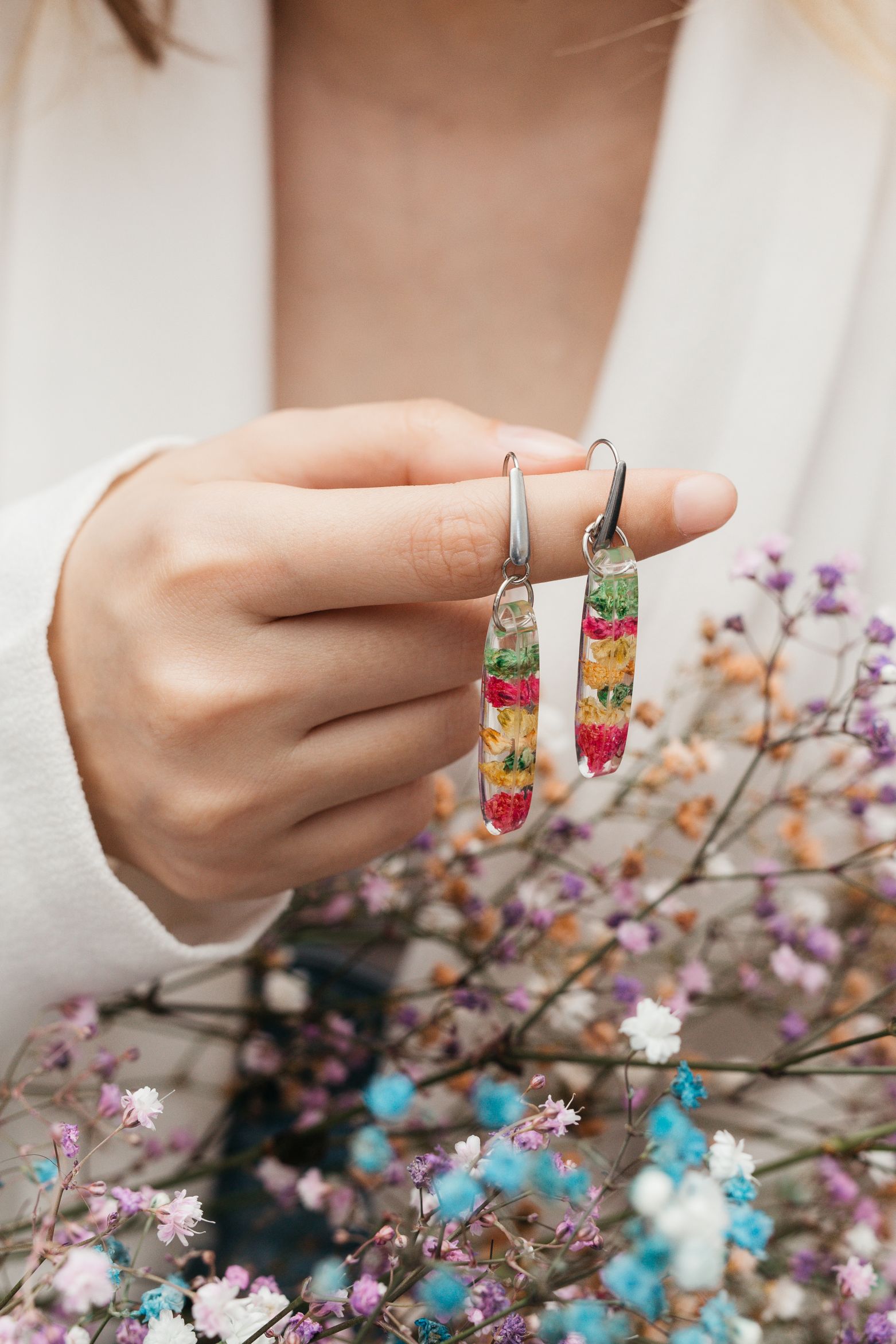 Svi komadi nakita su napravljeni od pravog cvijeća koje je pažljivo ubrano, osušeno i presovano. Cvijeće se zatim pažljivo stavlja u smolu kako bi se stvorio lijep i jedinstven dizajn, a simbolika koju nosi u sebi je neprocjenjiva. Osim estetske privlačnosti nakita, postoje i brojne prednosti nošenja cvjetnog nakita. Cvijeće nosi pozitivnu energiju i poznato je da ima smirujući učinak na um i tijelo, pa tako može pomoći na poboljšanje raspoloženja i smanjenje nivoa stresa, a posvećenost održivosti i etičkim praksama ekipe koja se bavi izradom nakita čini njene komade još posebnijim.