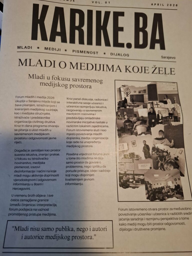 ONAuBiH i Karike.ba: Akademija omladinskog novinarstva