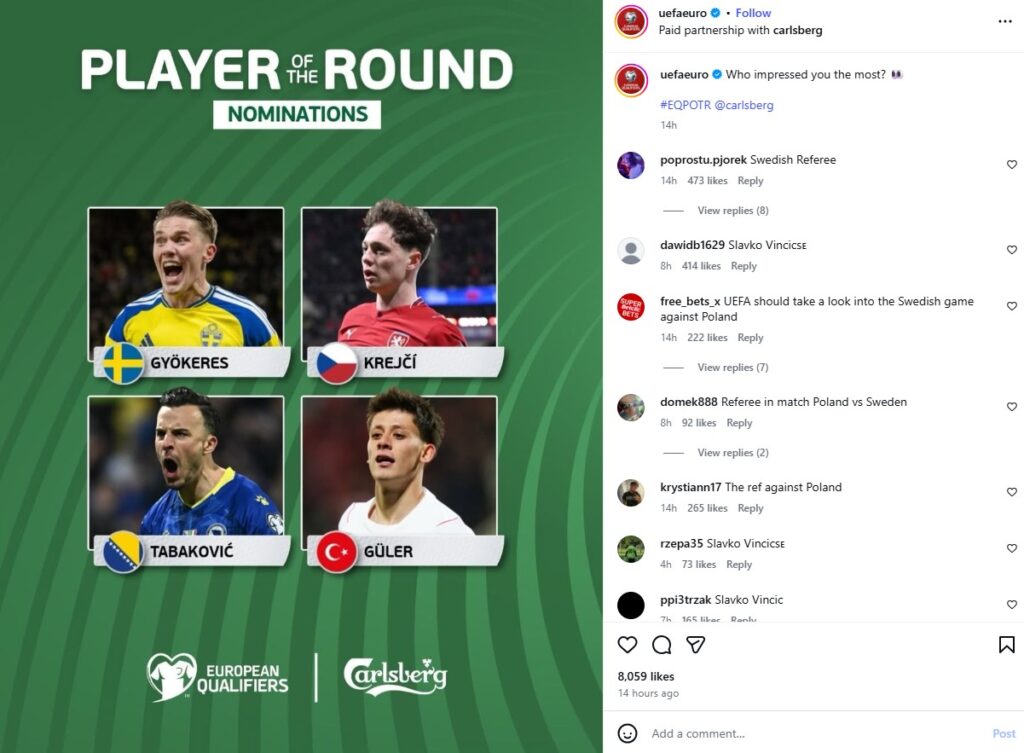 UEFA je na svojoj zvaničnoj Instagram stranici objavila post sa pitanjem “Ko je po vašem mišljenju najbolji igrač finala baraža?“.